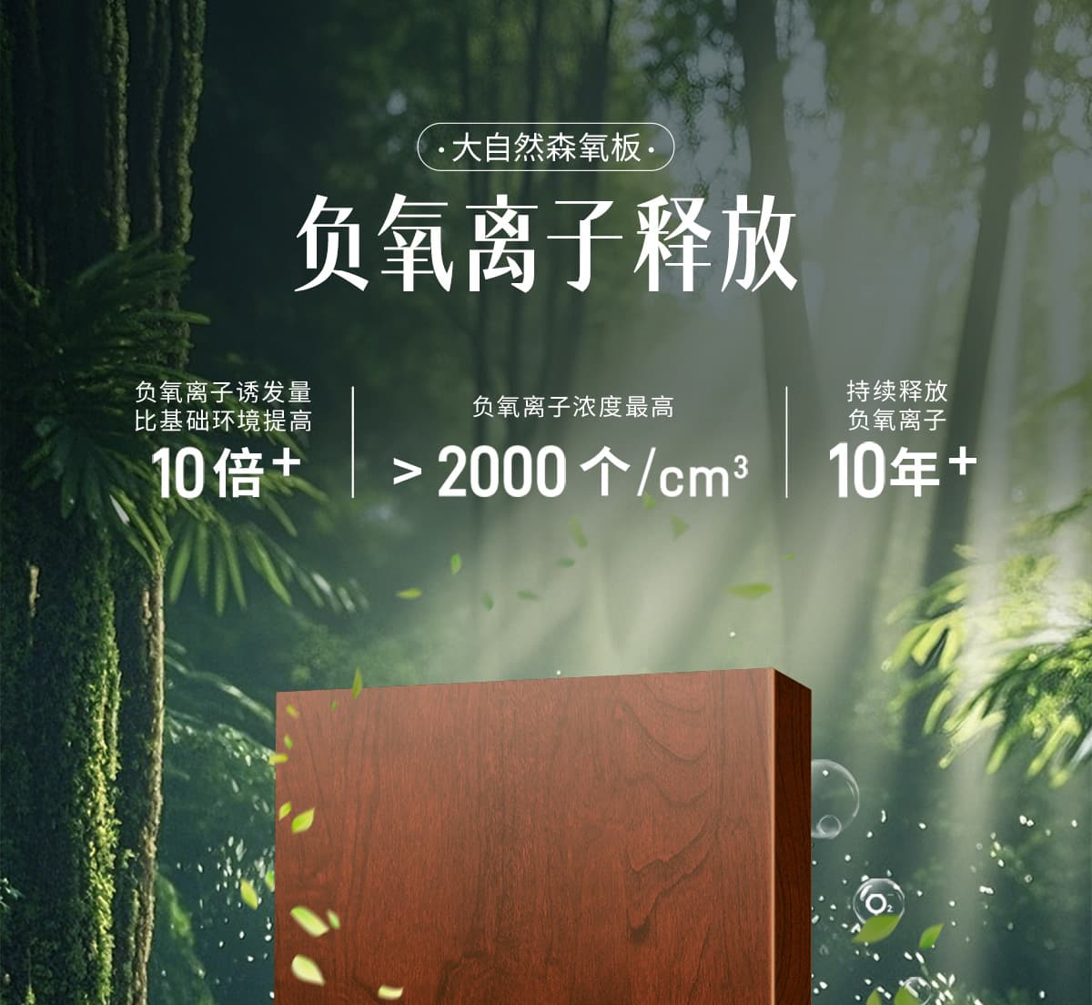 誘發(fā)空氣負(fù)離子量 比基礎(chǔ)環(huán)境提高10倍+
