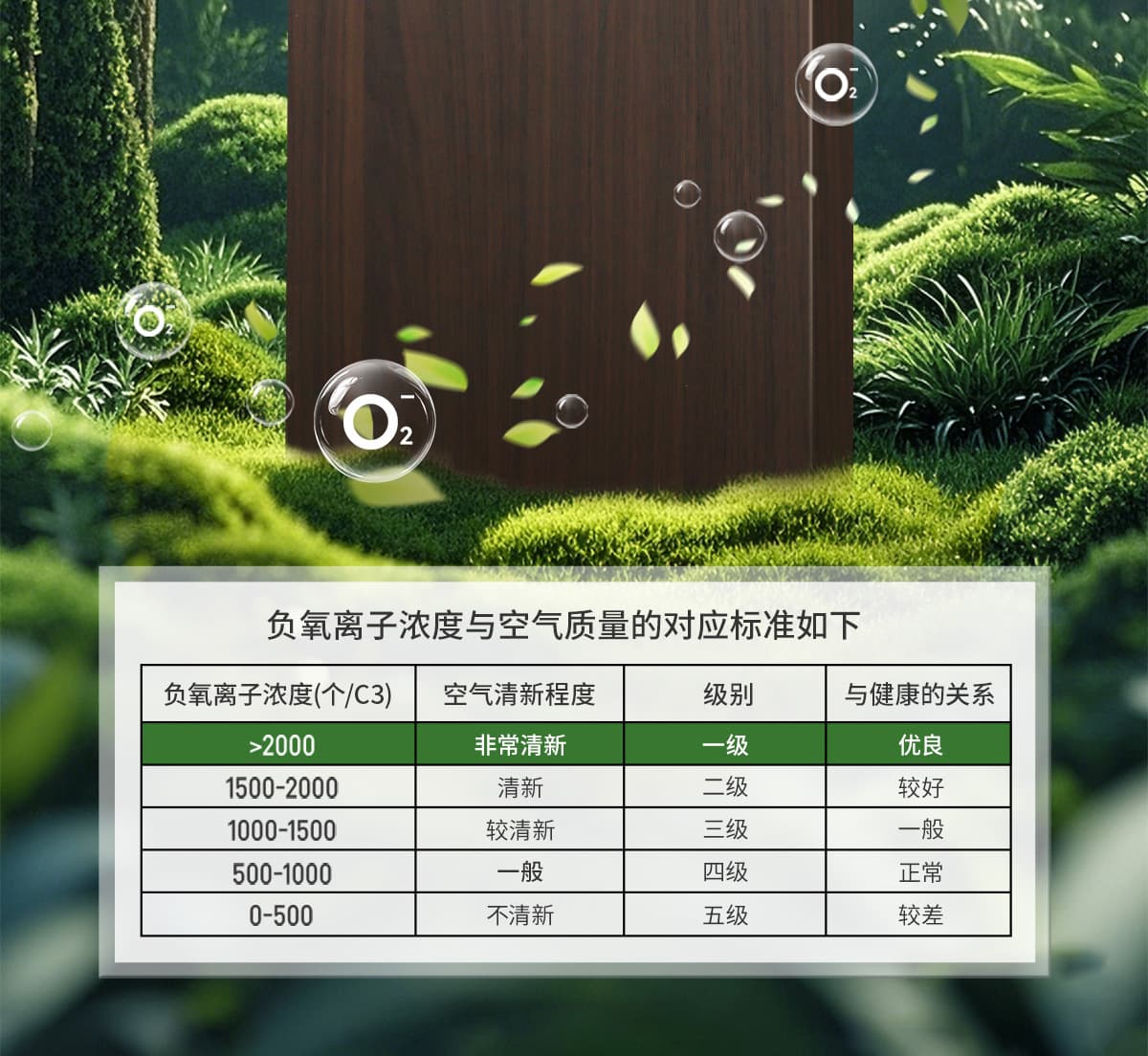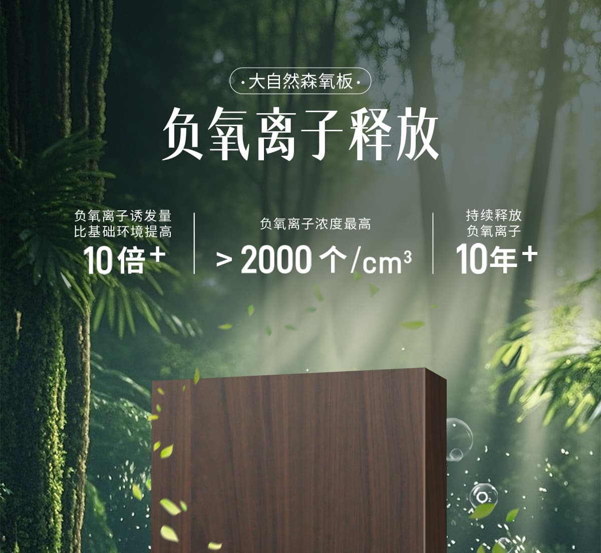 誘發(fā)空氣負離子量 比基礎(chǔ)環(huán)境提高10倍+